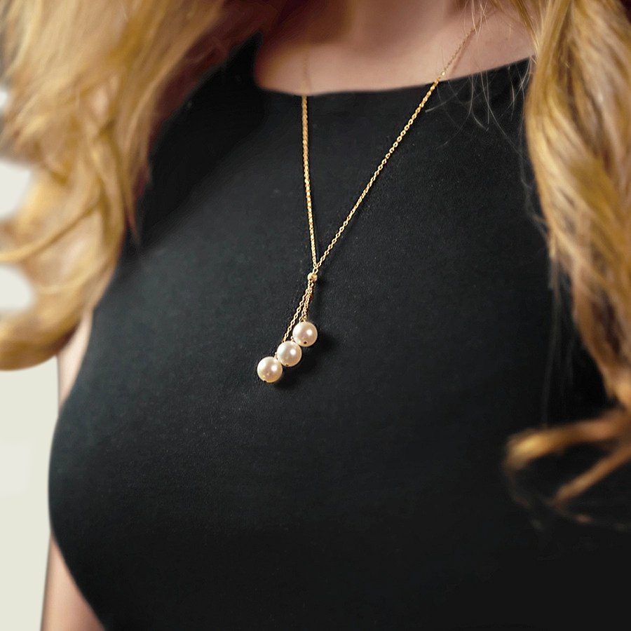 This chic pearl pendant necklace features exquisite AAAA-quality white freshwater pearls hand-picked for their incredible luster. The three stunning pearls are elegantly mounted alongside a dazzling gold-filled round ball on a gold chain, secured with a reliable spring clasp.