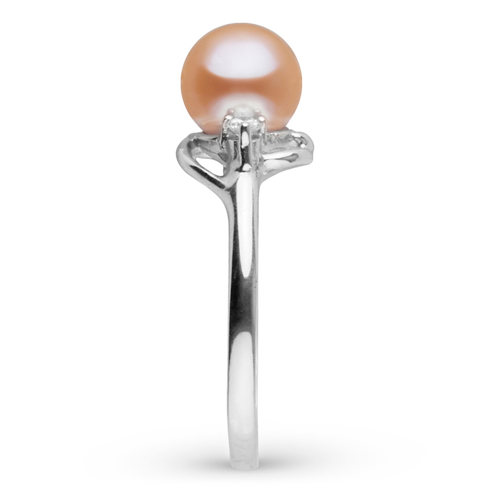 Grace meets brilliance in our Tiara Collection ring, showcasing a luminous 6.5-7.0 mm Pink Freshadama freshwater pearl, hand-selected from the top 0.01% of the annual freshwater pearl harvest. Known for their exceptional roundness, radiant luster, and rare quality, Freshadama pearls are celebrated as the highest grade of freshwater pearls available today.